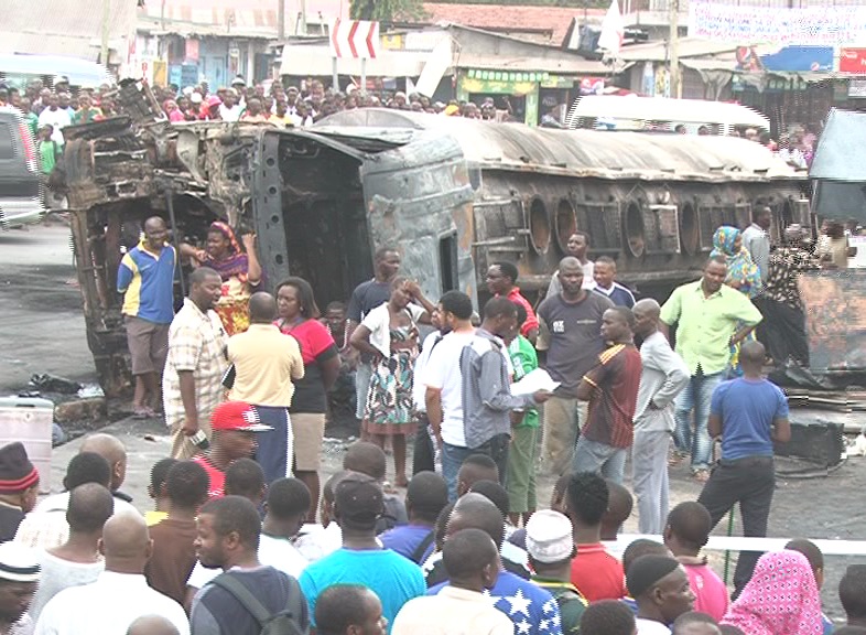 Watu watatu wamepoteza maisha baada ya lori lililokuwa limebeba petroli kuanguka,mbagala charambee Dar es salaam.