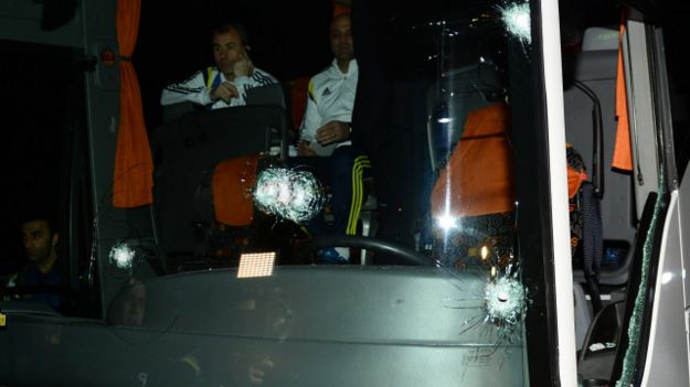 Basi la klabu ya Fenerbahce lilifyatuliwa risasi na wapiganaji baada ya klabu hiyo ya Uturuki kupata ushindi wa mabao 5-1 dhidi klabu ya Rizespor.