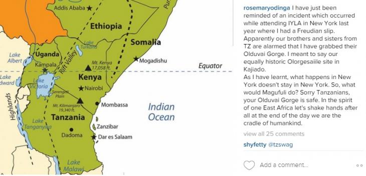 Baada ya malumbano hayo Rosemary aliamua kujirudi na kuomba radhi., huku akisema hakuwa nania mbaya kusema kuwa Olduvai Gorge ipo Kenya, kwani Afrika mashariki ni moja.